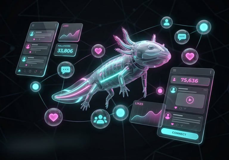 AxoIA MKT es una agencia de marketing digital impulsada por inteligencia artificial e inspirada en el ajolote, símbolo de evolución y adaptabilidad. Combinamos creatividad, datos y tecnología para ayudar a las marcas a transformarse sin perder su esencia.